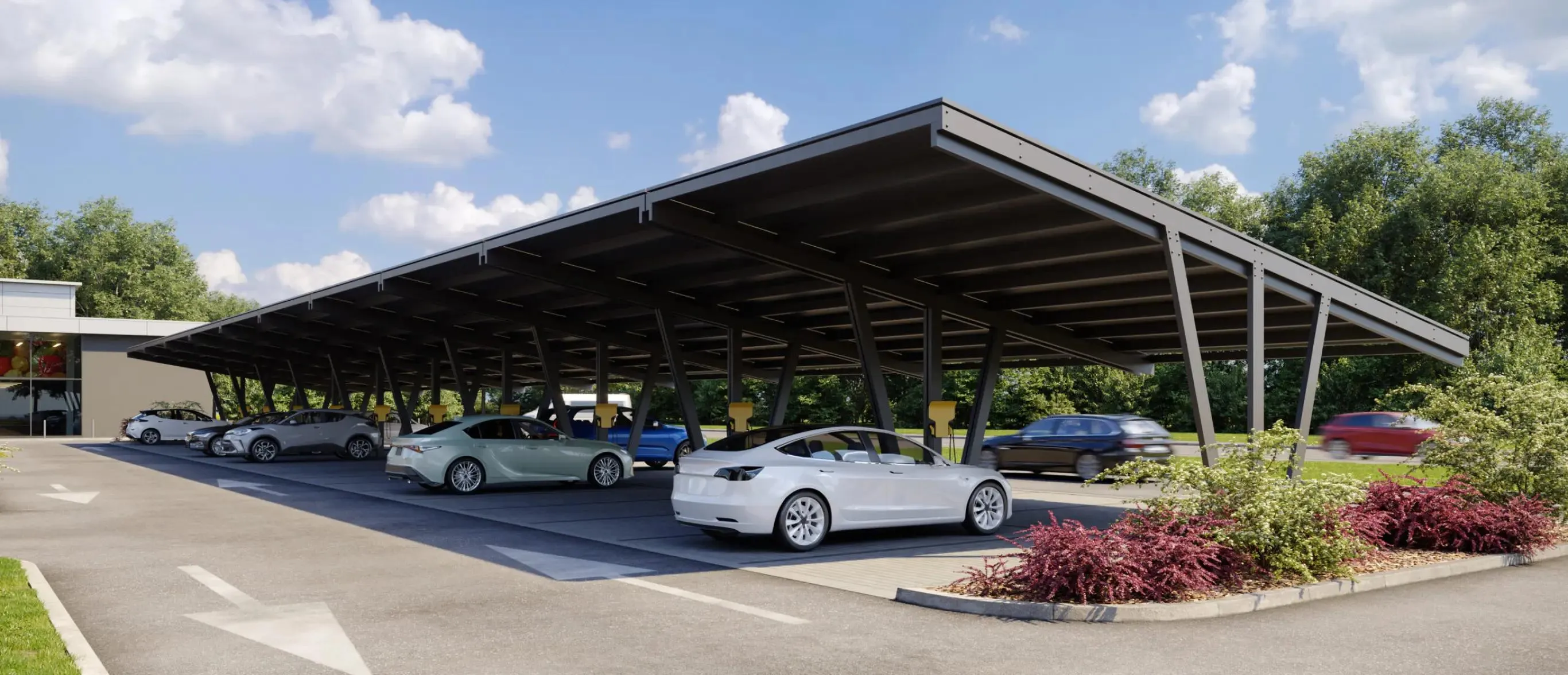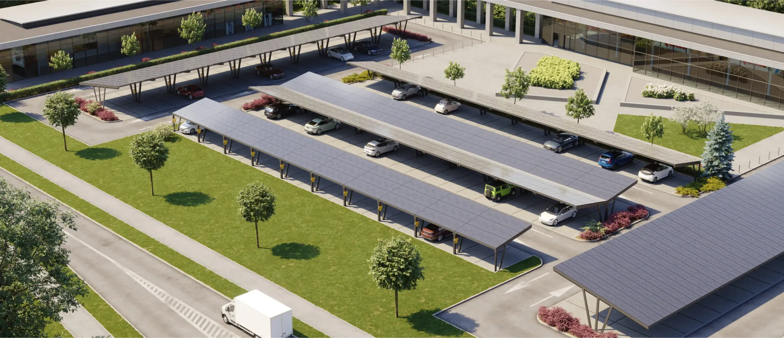 Linia carportów Commercial to rozwiązania dla dużych przestrzeni parkingowych. Generują energię dla zakładów produkcyjnych i przemysłu. Oferujemy system smart carport do inteligentnego zarządzania przestrzenią parkingową, dozorem wizyjnym oraz wydajnością energetyczną.